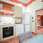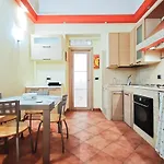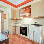 A kitchen includes a refrigerator, a stove top, and kitchenware. Piazza Umberto bus stop can be found in proximity to the apartment.